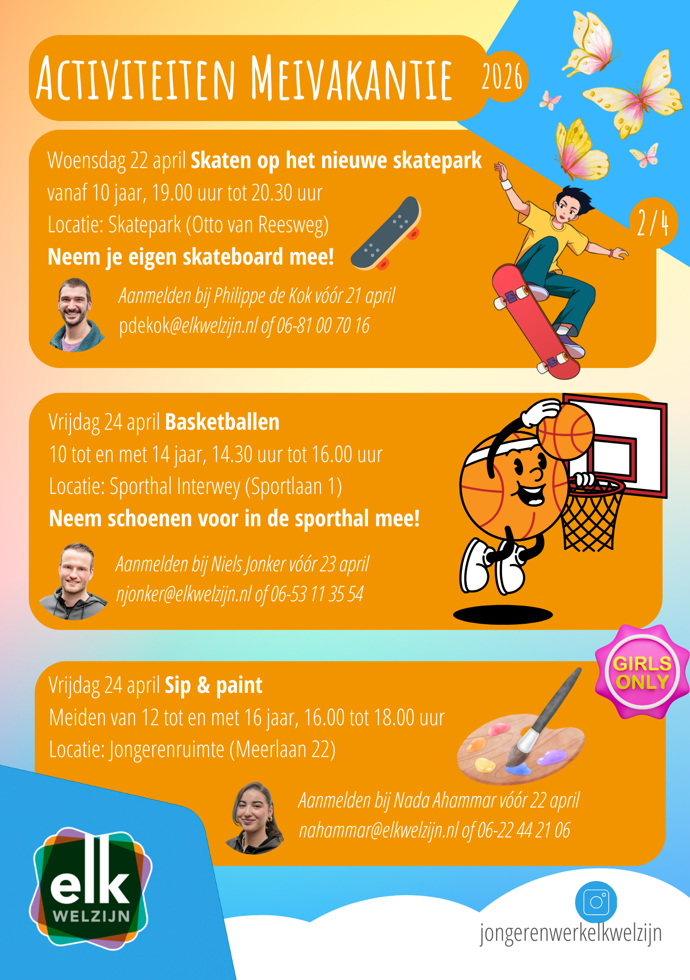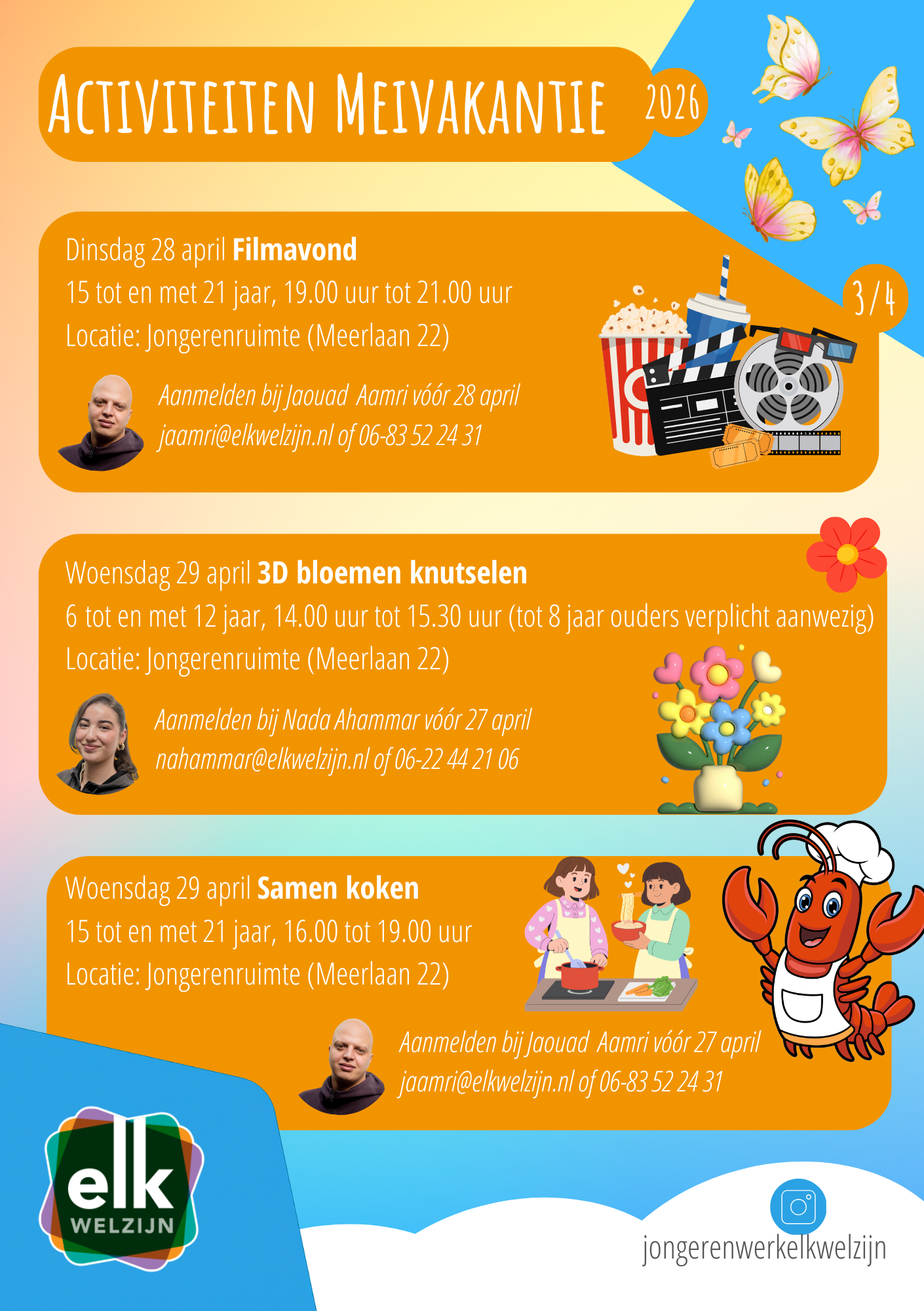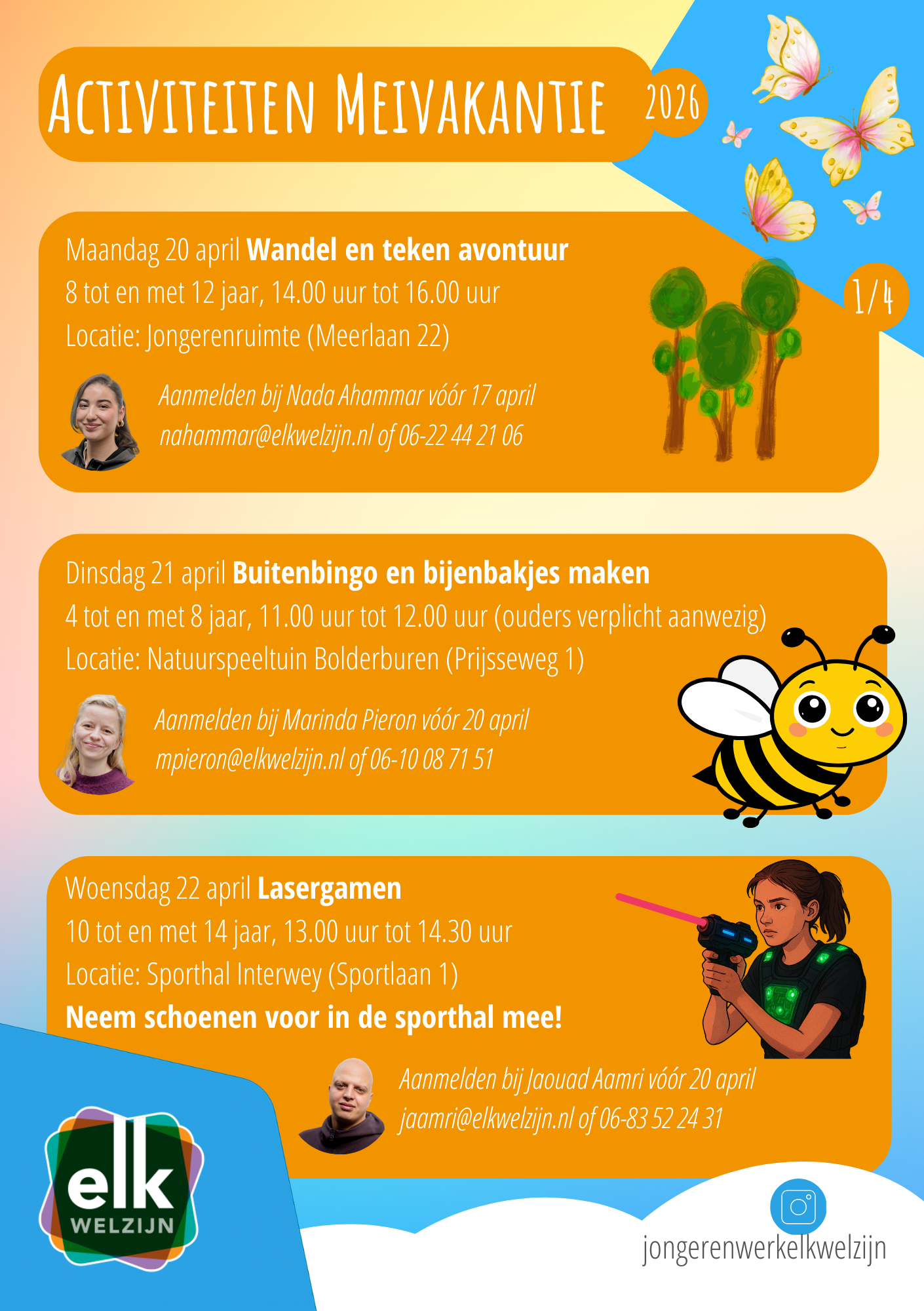 De kind- en jongerenwerkers van ElkWelzijn organiseren een meivakantie bomvol activiteiten voor jongeren van 20 april t/m 1 mei. Al deze activiteiten zijn gratis, dus doe mee!